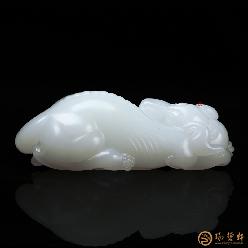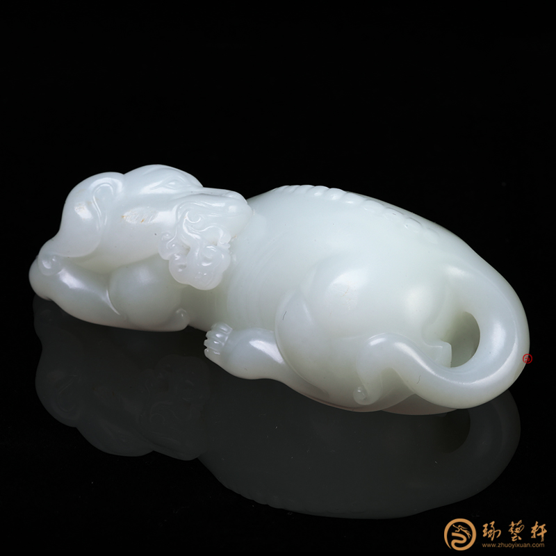 一级白,白皮。质地缜密,强光之下几乎不见结构。随行巧雕一只忠犬;“狗”是人类忠实的朋友,他做事敏捷、忠诚、有吉祥狗、富贵狗之称。其两只前脚抱在一起,所以起名为“大权在握”。